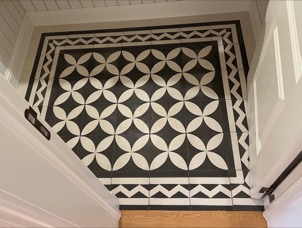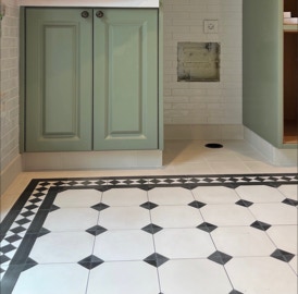Mosaico hidráulico monocromático ref 505 numa casa de banho na Dinamarca